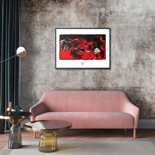 AusverkauftDER HAHNENKAMPF (Linolschnitt)